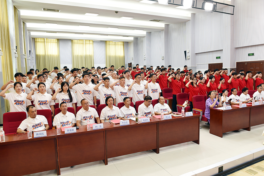 本届支教领队胡庆华则详细阐述了支教筹备。往届支教团队代表叙淑良分享了令人动容的支教故事。在带队老师的带领下,全体支教志愿者高举右拳、庄严宣誓。铿锵有力的誓言,不仅是志愿者对支教工作的郑重承诺,更展现了新时代青年服务基层的坚定决心。