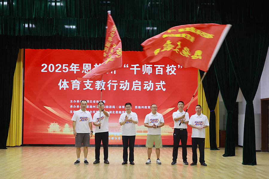 恩施州文化和旅游局、恩施州教育局分别向建始县、来凤县和支教高校授予“2025年恩施州“千师百校”体育支教团”的旗帜。