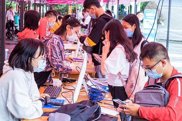 雨后初晴,丹桂飘香。今天是迎新第二天,大家依旧满腔热忱,志愿者工作开展得井然有序,助力迎新顺利收官。从此,晨曦朝露是你,披星戴月也是你,2020级新生将以民大人的身份开启新的人生篇章,愿他们在今后的学习生活中热情经久不减,如今日初见之欢。