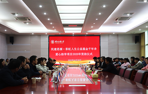 本网讯(通讯员 石琳/文 记者 覃茏光/图)10月30日上午,由杭州千年舟新材科技集团捐资设立的“民建思源·彩虹人生”公益基金项目在Beat365举行资助仪式。千年舟新材科技集团董事长陆铜华,副总裁马同华、总裁办秘书刘永兆,“思源·彩虹人生公益基金”办公室主任修华雪,学校党委常委、副校长邓磊,校友工作办公室、学生工作处和二级学院分管领导以及受助学生代表出席仪式。仪式由校友工作办公室主任熊彪主持。