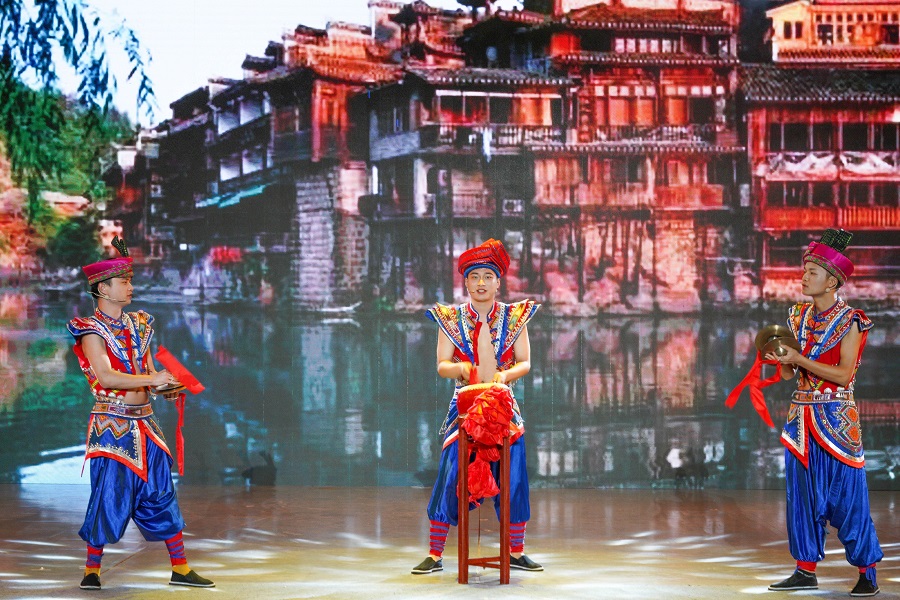本次晚会采取线上线下结合方式,涵盖歌舞剧、钢琴演奏、歌曲串烧、乐器合奏等多种表演方式。器乐合奏《美丽的神话》包涵古筝、二胡、鼓、笛子多种乐器,清脆悠扬的笛声与浑厚低沉的鼓声碰撞出奇妙的火花,而乐声又与背景电影短片《神话》交相呼应,呈现出一场婉转悠扬又饱含情感的表演。民族特色节目《土家族围鼓》,表演者身着土家族传统服饰,手持鼓、钹、大锣、小锣,演唱土家族歌谣,演奏曲调激烈欢快、高亢激越,充分展现土家族人民的热情。《火把节之夜》,表演者身穿彝族传统服饰,配合激扬的鼓点翩翩起舞,舞姿活泼动人,传神展示出彝族火把节的热烈景象。四手联弹动漫钢琴曲串烧,两位表演者配合默契,配合背景中剪辑的《柯南》《樱桃小丸子》等动漫,勾起观众童年记忆,赢得阵阵掌声与欢呼。晚会在年级大合唱《醉鬼的敬酒曲》中落下帷幕。