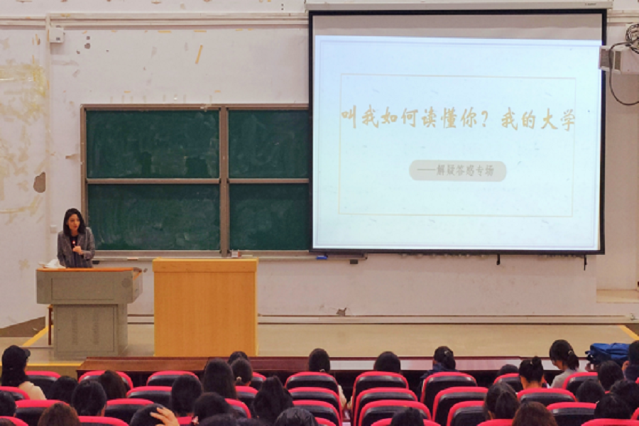 10月19日,在修远楼5A207教室,外国语学院国家奖学金获得者熊诗英、国家励志奖学金获得者张慧、社会实践优秀个人肖曾洁围绕大学期间的学习、工作和实践经历,向大一新生宣讲自身的励志成长故事和奋斗历程。当被问及如何克服在学习中遇到的困难时,熊诗英说道:“求学的道路必定不会是一帆风顺的,面对困难时,我会反复告诉自己,坚持下去!勇敢一些!坚持就是胜利,就是这样的心态,让我渡过了一次又一次的难关。”熊诗英的回答鼓舞了现场每一位新生。