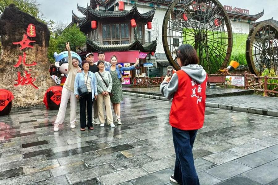 外国语学院志愿者为游客拍照