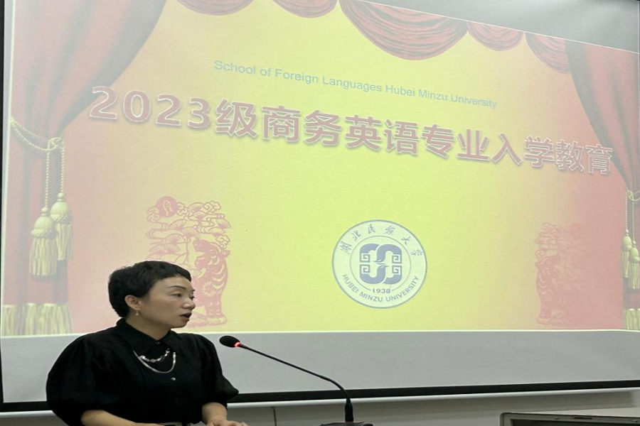 9月27日,外国语学院2023级本科生开学典礼在行政楼1号会议室举行,院长骆贤凤以《涵盖世界眼光,厚植家国情怀,书写精彩篇章,成就辉煌未来》为题寄语新生,为新生讲授了一堂生动的 “思政大课”。他强调,新生要成长为新时代的外语人才,不能止于单纯的语言技能训练,更要通过语言学习培养跨文化的国际视野和人文素养,坚守爱国初心,坚定文化自信,向世界讲好中国故事,传播好中国声音。