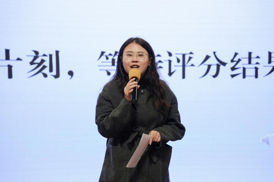 谭博源点评。她首先对选手的精彩表现给予肯定,并表示比赛重在体验,各位选手要学会通过比赛找到适合自己主持的领域和风格,鼓励学生要积极参加活动,自信地展示风采,提升综合素质,促进全面发展。