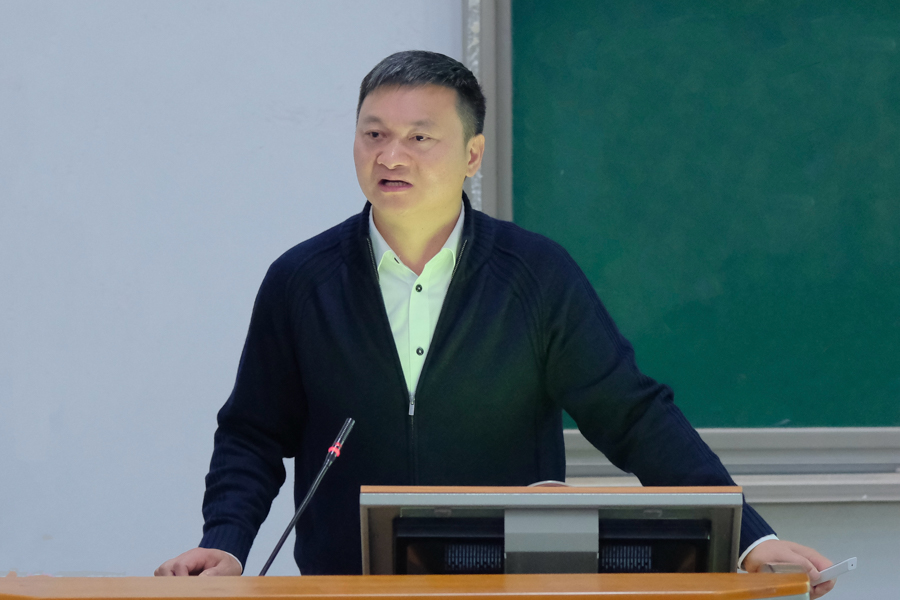 陈世强从审核评估对学生的意义出发,指出审核评估有利于审视学校和学院在智能化教学和实践中的不足,进一步完善智能化教学,以学生为中心开展教学。他结合学院发展和变迁的艰难历程,讲述了学院的发展离不开校友的帮助和捐赠,希望学生增强爱校爱院的集体荣誉感,从当下做起,上好每一堂课,认真对待每一门课程,营造有序的课堂和优良的学风。