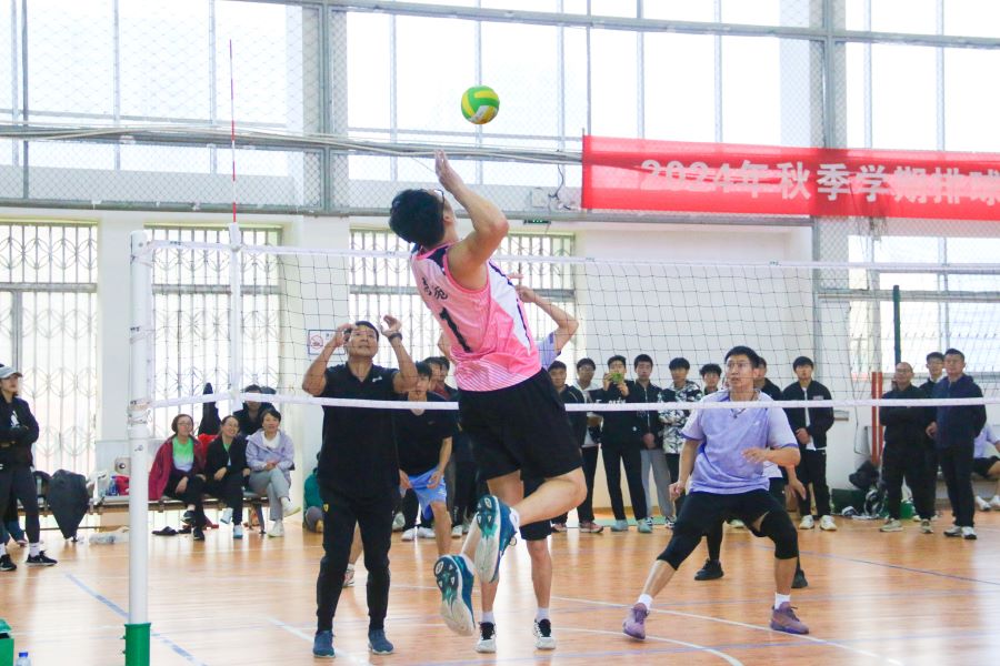 比赛现场,各参赛队伍奋力拼搏,配合默契。各代表队发球有力、接球沉稳、传球精准、扣球精彩。体育学院与化学与环境工程学院双方队员你来我往,比分紧咬。体育学院代表队凭借出色的身体素质和专业的球技,在关键时刻连连得分。女子组的外国语学院和林学园艺学院的比赛也毫不逊色。女老师们巾帼不让须眉,每一个球都全力以赴,精准的传球、扣球和拦网,都展示出他们高超的技巧和团队协作能力。场外观众热情高涨,加油声、喝彩声此起彼伏,现场气氛浓烈。