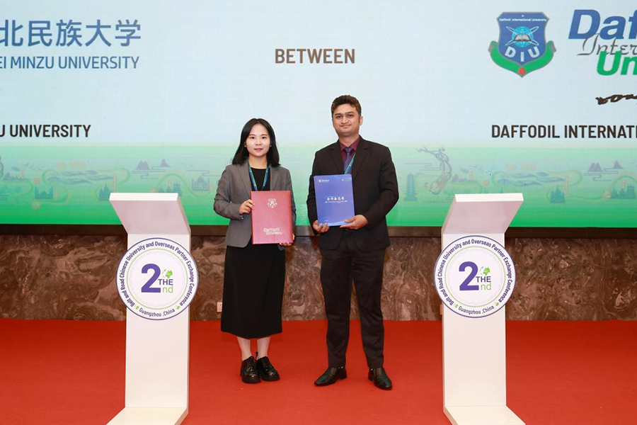 学校与孟加拉国达福迪国际大学(Daffodil International University)达成教育合作交流意向,与孟加拉国“一带一路”汉语中心就合作共建“国际学生生源基地”举行了揭牌仪式。