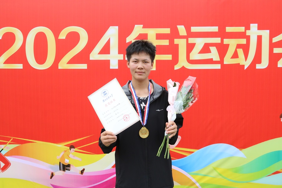 智能科学与工程学院2022级学生韦玥昕凭借着高超的技巧和沉稳的发挥,成功完成了决赛精准的投掷,在本次女子组标枪决赛中以20.91米的好成绩夺得桂冠。