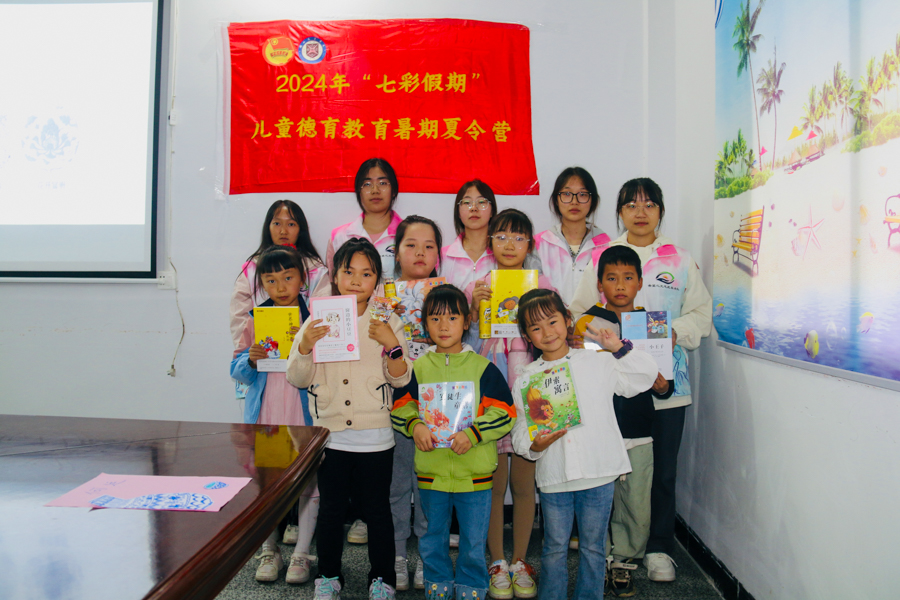 课程结束后,希望之光团队进行了赠书活动,精心准备的书籍被一一送到孩子们的手中。这些书籍内容丰富多样,既有寓教于乐的科普读物,也有启迪智慧的文学经典。孩子们兴奋地翻阅着新书,脸上洋溢着幸福的笑容。