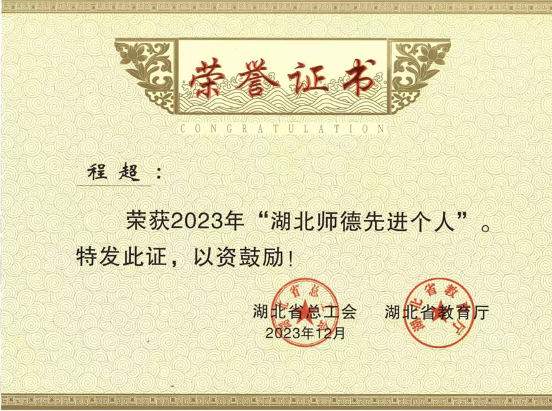 此外,程超努力推动食品科学与工程学科发展和团队建设,多方努力下,该专业于2018年获一级学科硕士学位授权点、2019年获湖北省一流建设专业、2022年获国家一流建设专业,食品科学与工程教学团队获湖北省优秀基层教学组织和优秀教学团队。