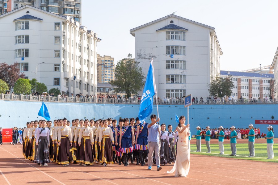 党委副书记、组织部长邓磊在开幕式上致辞。他指出,运动会是学校“全方位育人”的重要载体,是学校师生“育体”与学校“育人”有机结合的具体表现;运动会是一场体育竞技盛会,也是一堂挑战自我、勇攀高峰、实现梦想的成长课程;运动会是广大师生展示自我风采的舞台,也促进相互融合交流的平台。他希望全体运动员秉承“锻炼身体、增强体魄”的宗旨,追求“团结、友谊、进步”的目标,发扬“更快、更高、更强、更团结”的奥林匹克精神,团结协作、不断超越、创造优异成绩,使本届运动会成为一次增进友谊、团结鼓劲、互相学习、开拓前进的体育盛会,在运动中展现民大风采,并预祝全体运动员取得优异的成绩。