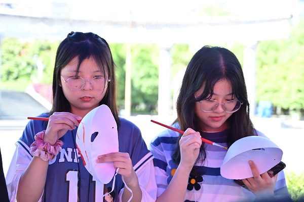 活动在古典舞蹈《美人关》中拉开序幕,表演者衣袖飘摇,尽显古代美人的窈窕身姿和动人神韵;“知识竞答”环节,主持人对参与者进行有关端午知识的提问,问题涵盖“端午节别名”“端午风俗”等,参与者或冥思苦想,或对答如流,充分考验学生对传统文化知识的了解;“面具涂鸦”环节,主持人介绍傩戏文化后,参与者根据现场提供的面具白坯和颜料,在面具上进行DIY创作,千姿百态的傩戏面具将剽悍、刚烈、英气等美感融为一体,体现出独特的艺术内涵,参与者根据自己喜欢的样式专注描摹,时而小声交谈,时而向工作人员请教,在面具的涂鸦中亲身体验傩戏文化;“相声表演”环节,表演者带来的相声表演《大文学家》以默契问答的形式将中国传统习俗呈现在观众面前,表演者演技高超,语言幽默,现场一片欢声笑语。