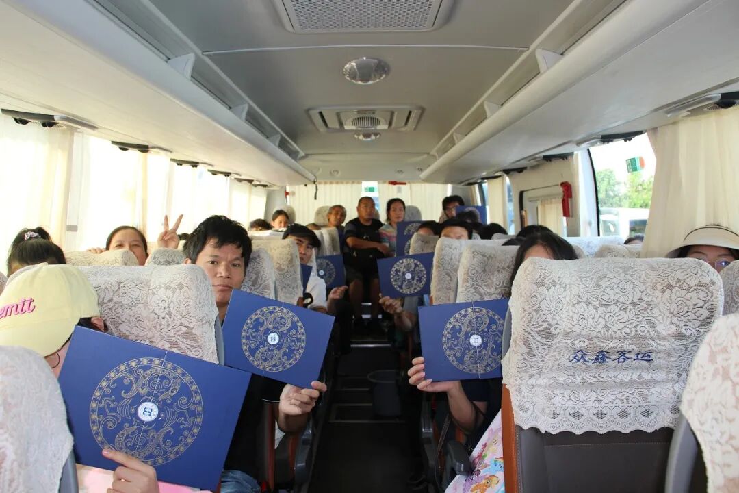 新生怀揣期待,有序登上前往校园的大巴车。刚落座不久,工作人员便手持相机走上车,笑着提议:“大家一起拍张照,记录下这趟‘奔向新生活’的旅程吧!”话音刚落,车厢里立刻响起响应声,新生们纷纷举起手中的录取通知书——有的将通知书贴在胸前,有的高高举过头顶,脸上满是自豪与喜悦。