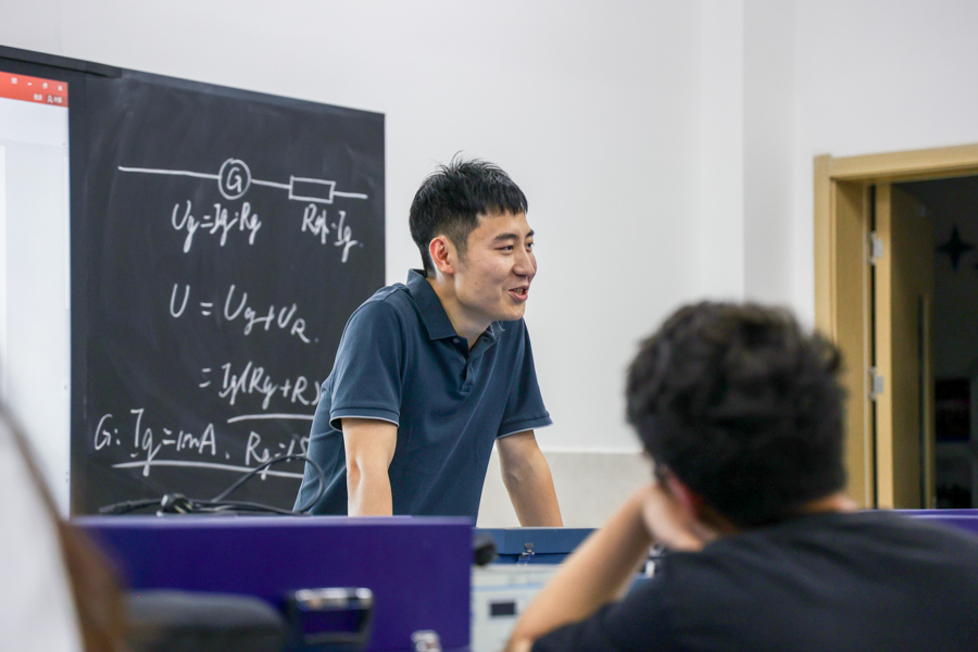 课堂上,他不厌其烦地给学生讲解书本上没有或者简化过的计算推理过程,认为“正如物理学的发展一样,从未知到已知的过程可以激发学生的求知欲。”2022级智能制造专业的肖宇灏说:“谭老师在课堂上总是充满激情,注重与学生互动,一堂课下来黑板上布满了解题过程。课后,他总是耐心地回答我提出的各种问题。”