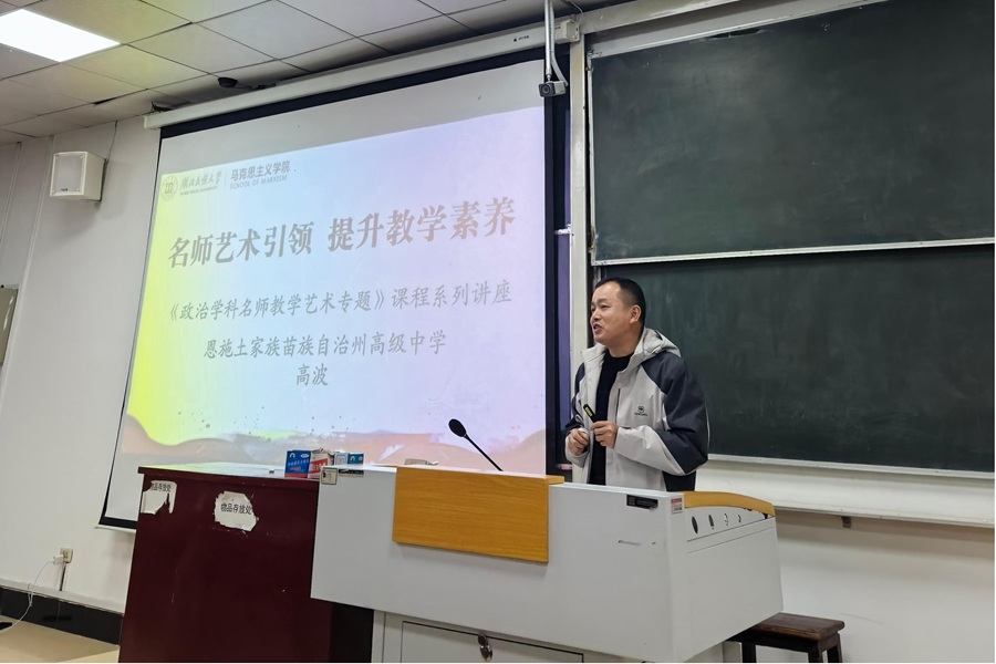 为充分发挥名师的示范、引领作用,提升师范生专业素养,3月5日到4月2日,马克思主义学院举办以“名师艺术引领 提升教学素养”为主题的《政治学科名师教学艺术专题》课程系列讲座。本次活动邀请恩施高中、恩施市第一中学的四位名师担任主讲人。马克思主义学院2022级思想政治教育专业全体学生参加此次讲座。