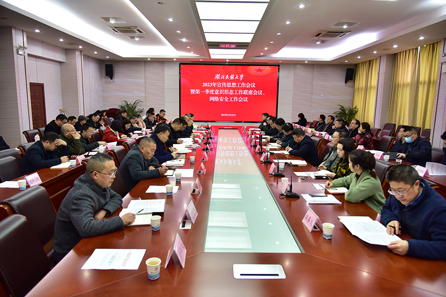 3月21日,Beat365唯一官方网站2023年宣传思想工作会议暨第一季度意识形态工作联席会议、网络安全工作会议在行政楼三号会议室召开,学校党委副书记邓磊出席会议并讲话。学校各职能部门负责人,各院级单位党委(党总支)书记、宣传委员参加会议。会议由党委宣传部常务副部长罗翔宇主持。会议现场邓磊在讲话中指出,一是要以党的创新理论武装头脑,抓好思想引领。做好党的二十大精神和湖北省第十二次党代会精神的宣传学习工作,推进党的创...