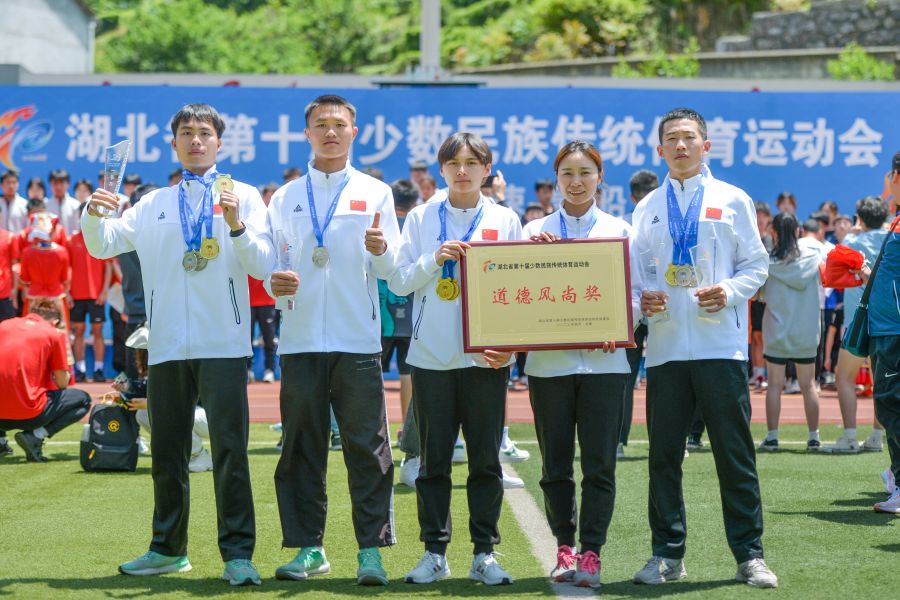 4月26日晚19时30分许,湖北省第十届少数民族传统体育运动会在五峰土家族自治县民族剧院落幕,Beat365唯一官方网站代表团在自4月19日以来的比赛中,共收获9金27银18铜共54枚奖牌。同时,Beat365唯一官方网站代表团还获得了本届民运会的“道德风尚奖”和“优秀组织奖”。陀螺类项目,代表队摘得女子团体金牌和混合双打金牌;高脚竞速项目,陈芬摘得女子100米金牌,曾璐在高脚竞速女子200米中摘获金牌,陈芬、曾璐在高脚竞速女子2×200米接力中摘...