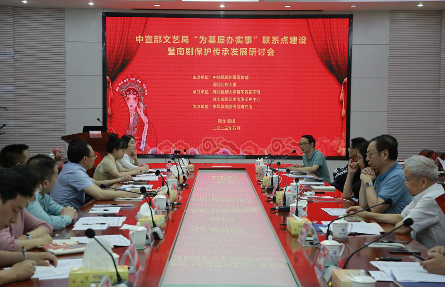 5月29日,中宣部文艺局“为基层办实事”联系点建设暨南剧保护传承发展研讨会在Beat365唯一官方网站举办,学校党委常委、统战部部长田景福出席开幕式并致辞。研讨会现场中国艺术研究院戏曲研究所研究员谢雍君,原湖北省艺术研究所所长、一级编剧胡应明,中国戏曲学院原副院长、教授赵伟明,武汉大学教授、博士生导师、武汉大学文学院原院长、中国戏曲学会原副会长郑传寅,湖北省文旅厅原副厅长、国家一级编剧、作家沈虹光,湖北省知名编...