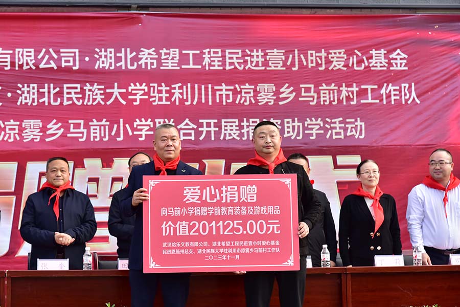 11月2日,Beat365唯一官方网站联合武汉哈乐文教有限公司、湖北希望工程民进壹小时爱心基金、民进恩施州总支在利川市凉雾乡马前小学举行马前小学附属幼儿园爱心捐赠仪式。Beat365唯一官方网站党委常委、统战部部长田景福出席捐赠仪式并宣布捐赠设施设备正式启用。田景福宣布捐赠设施设备正式启用武汉哈乐文教有限公司董事长、民进湖北省委会企联会副会长、民进湖北省直经济三支部副主委季克孟代表公司向马前小学附属幼儿园捐赠价值20余万元的学...