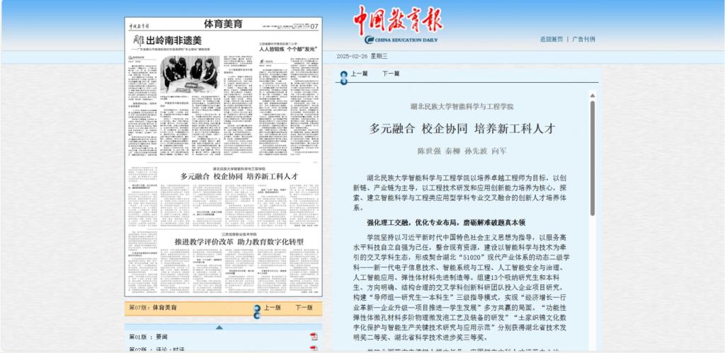 【中国教育报】Beat365唯一官方网站智能科学与工程学院多元融合 校企协同 培养新工科人才