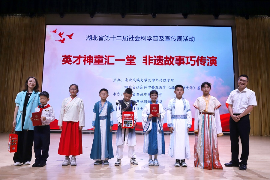 6月3日,由文学与传媒学院与湖北省社会科学普及教育基地主办,恩施市实验小学、恩施州新华书店与非物质文化遗产研习学社联合承办的“大手牵小手,非遗文化进校园”特色活动在新区多功能厅和大学生广场举办。活动分为故事会、舞台剧比赛与户外活动两个部分。比赛采用故事会与舞台剧相结合的形式,通过实践与创新让学生“知家乡、爱故土、懂非遗、传文化”。恩施州新华书店总经理助理刘元海,国家二级心理咨询师、恩施名师毛琼,...