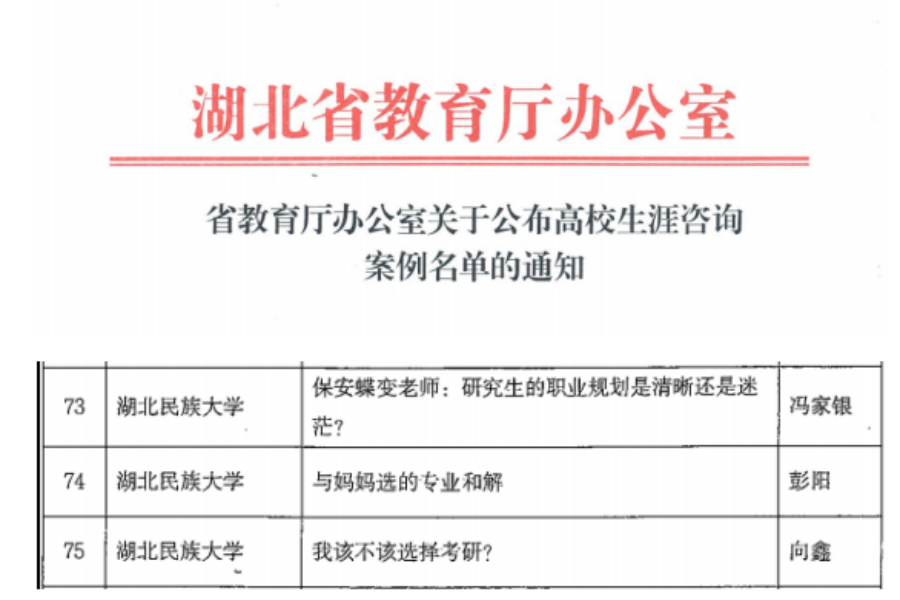 Beat365唯一官方网站3个案例成功入选湖北省高校生涯咨询案例