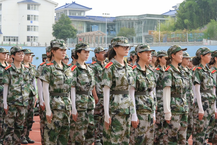 晨曦破晓,在五环运动场和民族运动场上,新生列队完毕。他们的脸上少了初来乍到的青涩,多了几分坚毅与自信。军训训练现场 炎炎夏日,学生从站军姿、稍息、立正、跨立、停止间转法等基本项目开始学起。每一个动作,教官都亲自分解示范与指导,从摆臂到踢腿,从握拳到收脚,都要通过教官严格把关。“抬头挺胸,收腹,目视前方,下颚微收,五指紧贴裤缝,身体微微前倾”,教官的口令,如雷贯耳,每一次动作的纠正,都在向标准看齐...