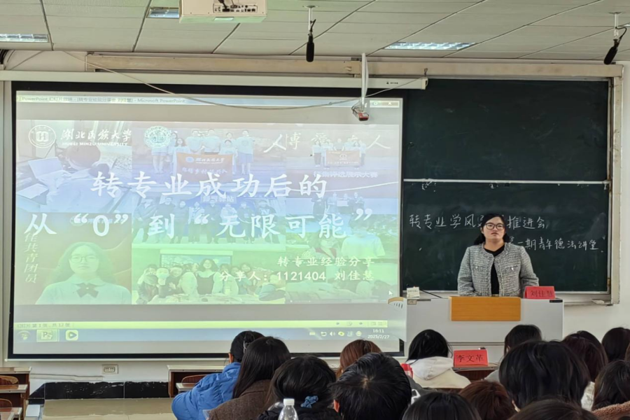 为增强学风建设的实效性,帮助转专业学生迅速融入学习环境,2月27日,法学院在德智楼9B301教室举办“转专业学生学风建设推进会”暨第1期“青年·德法讲坛”。学院党总支副书记黄晓波表示,学院高度重视同学们的学习和成长,期望能通过“学风建设推进会”帮助同学们强化初心、优化学风,习得方法、获得进步。刘佳慧作分享2021级转专业学生优秀代表、国家奖学金获得者、学校“十佳共青团员”刘佳慧从学业发展、专业竞赛、志愿服务...