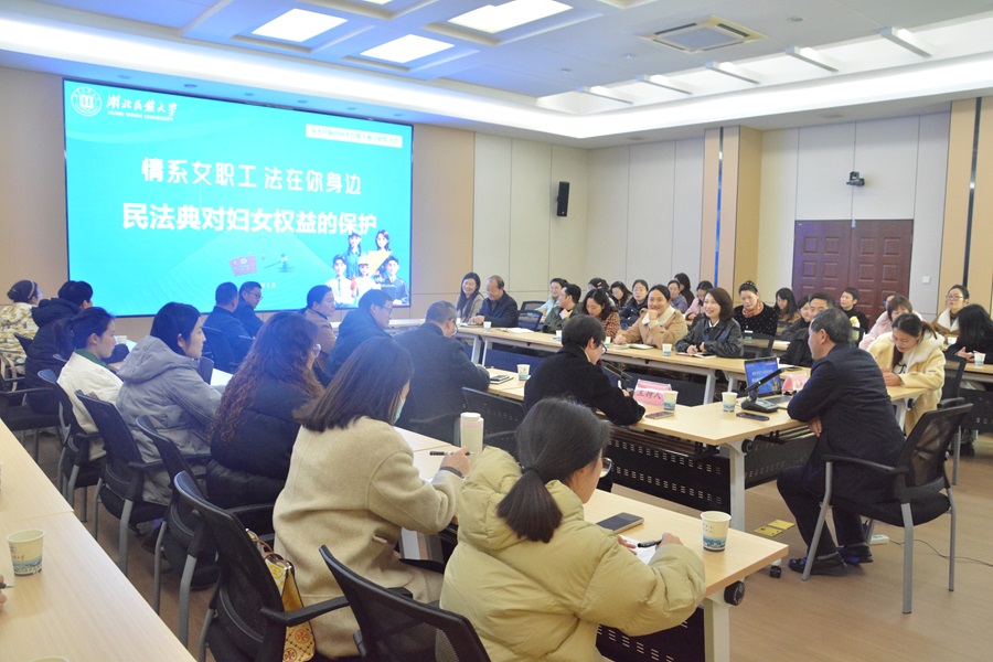 为深入学习习近平法治思想,增强女职工法律意识,营造依法维护女职工权益的良好氛围,3月14日下午,学校工会举办“民法典对妇女权益的保护”专题知识讲座。讲座由法学院副院长、博士、副教授李文革主讲,校工会副主席龙永红主持,各分工会主席、女工委员、女职工代表等60余人参加学习。讲座现场李文革教授以《民法典对妇女的权益保护》为题,结合民法典婚姻家庭编最新规定,通过“理论阐释+案例解读”的形式,系统阐述了五大核...