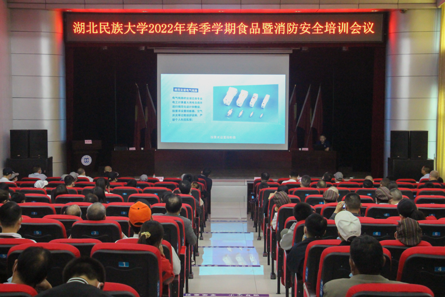 5月27日,学校在行政楼一号会议室举行春季食品暨消防安全培训会议,恩施市市场监督管理局舞阳所所长崔勇、副所长胡成学,恩施市消防救援大队工程师程学飞应邀作专题培训。学校后勤保障部饮食服务中心全体工作人员,各食堂经营单位从业人员以及食堂物资供应商代表,国有资产与招投标管理处所属门店、超市从业人员等共计130余人参加本次培训。会议由后勤保障部副主任高波涛主持。