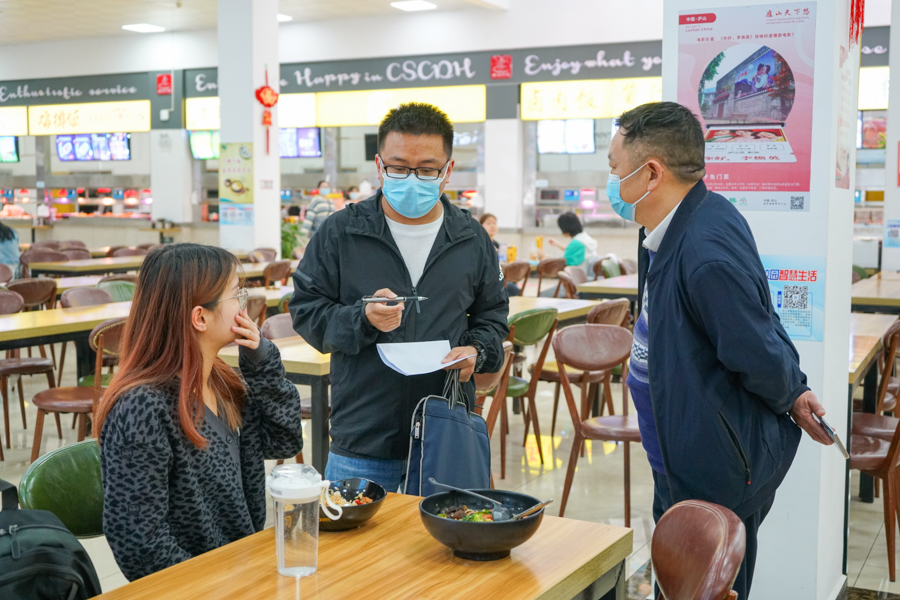 执法人员调查学生就餐体验