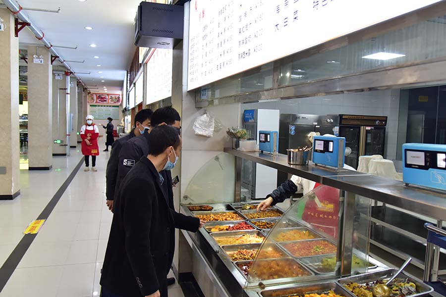 在西苑食堂,联合检查组实地检查了食堂的价格、清洗消毒和从业人员健康管理等情况,详细查阅了饮食服务中心各项管理规章制度及有关资料,就饭菜价格、饭菜质量、服务态度、就餐环境等方面开展了随机调查。检查组充分肯定了食堂的管理、卫生安全和稳定价格等相关工作和措施,针对相关不足之处提出针对性整改意见。