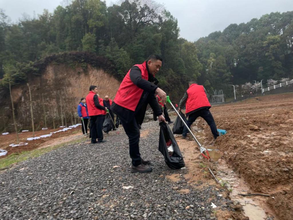 特色实践环节,为践行“雷锋”精神,积极响应恩施市“创文创卫”、学校文明校园创建等工作要求,全体党员前往学校三洼花海项目现场开展学雷锋志愿服务活动,清理偏僻区域和卫生死角中的白色垃圾及杂物。