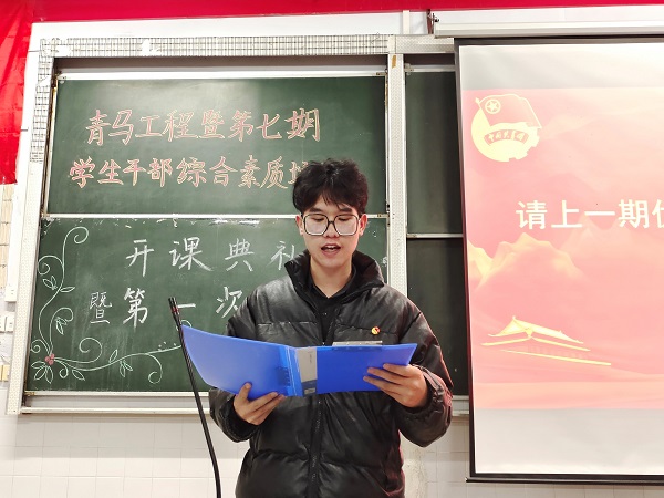 活动伊始,全体成员起立奏唱团歌,刘恒宣读《青马工程培训班考核方案》。随后,第一期优秀代表文杰和新学员李雅琪上台发言。接着,彭召元对全体学员进行第一次授课。他从学习党史、新中国史的重要性为切入点,指出当代中国是历史中国的延续和发展。他谈到,中国共产党的成立是中国历史上开天辟地的大事业,中国共产党的领导是民心所向,中华人民共和国成立的那一刻不只是党迎来的新时代,更是中国迎来的新时代。最后,他希望大家能铭记历史,缅怀先烈,做到知史爱党,知史爱国。