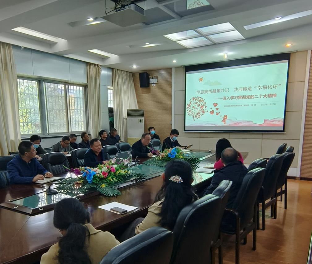 11月17日,学院召开全院教职工会议,学习贯彻党的二十大精神。党总支书记张刚作了题为《学思践悟凝聚共识 共同缔造“幸福化环”——深入学习贯彻党的二十大精神》的学习报告,对党的二十大报告的主要精神进行了解读,并就如何贯彻落实党的二十大精神提出了具体要求。张刚要求全院上下统一思想,提高认识,将学习贯彻党的二十大精神作为当前和今后一段时期重要的政治任务,不断发扬永不停歇的奋斗精神和永无止境的创新精神,以立德树人为中心,以安全稳定、高质量发展、团结和谐等为目标共同缔造“幸福化环”,努力推进学院事业高质量发展,为实现中国式现代化贡献自己的力量。