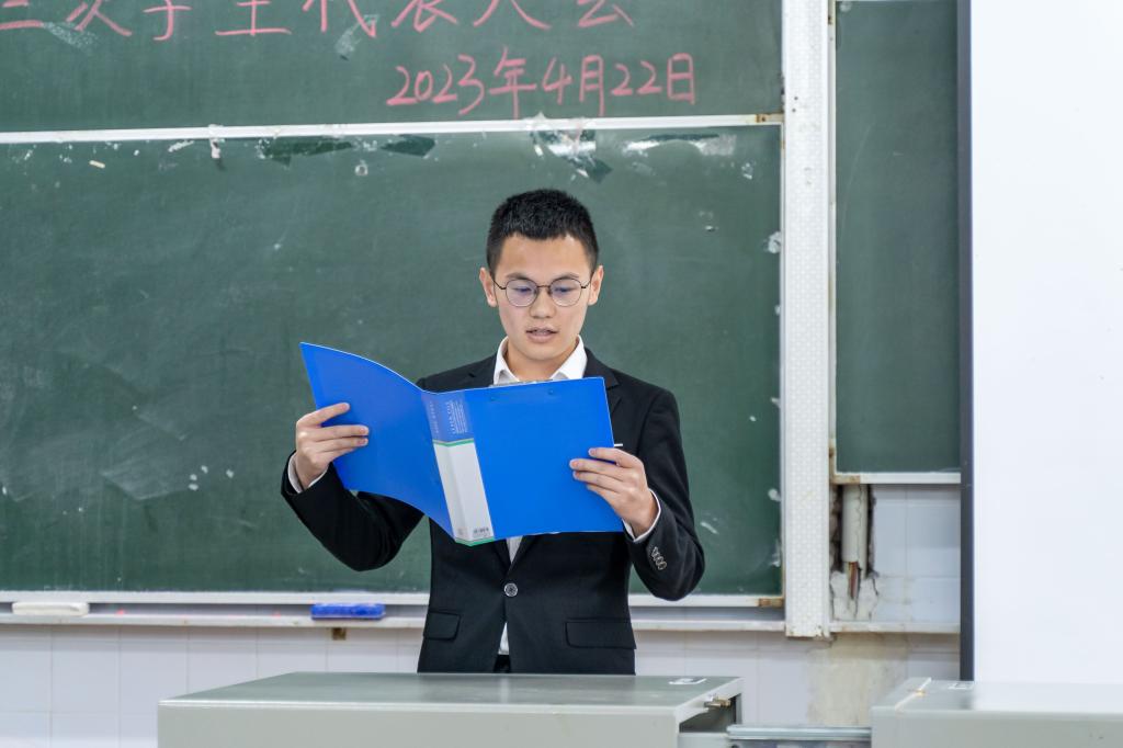 秦胜明代表我院学生会作题为《怀抱梦想脚踏实地,敢想敢为善作成,在新时代伟大征程中奋力谱写青春华章》的工作报告。他总结,过去一年中,我院学生会完善了学生会制度建设并对未来做出展望。