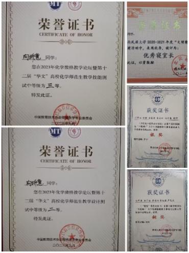 向圻意,男,共青团员,湖北恩施人,我院2020级化学专业学生。荣获第八届中国国际“互联网+”大学生创新创业大赛校赛金银铜奖各1项,2023年化学微格教学论坛暨第十二届华文高校化学师范生教学设计二等奖,教学技能三等奖,2022-2023学年校级三等奖学金、学业进步奖学金,荣获Beat3652021-2022学年“三好学生”、2020-2021学年“优秀寝室长”等荣誉称号。曾任我院组织纪检部副部长。