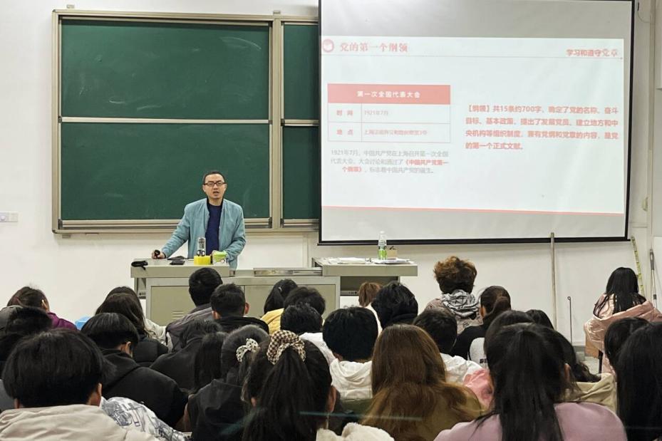 我院研究生党支部书记程新华开展第二次授课,他分别从“二十大对党章做的重要修改”“党章的概述”“党章的发展历程”“总纲”“党章的条文”对《中国共产党党章》进行全方位解读。程新华介绍党的二十大中对《中国共产党章程》所做的修改,表明党章的每一次修改,都反映出我们党对客观实际和客观规律认识上的深化。同时,他从党章的总体概述、体系、现行党章的通过时间等来加深学员们对党章的认识,并指出党章是党的总章程,集中体现党的性质、宗旨、路线、方针政策和重要主张,规定党的重要制度和体制机制,是全党必须共同遵守的根本行为规范。课程最后,程新华介绍党的组织制度和组织体系、干部、纪律、纪律检查机关、党和共产主义青年团的关系及党徽党旗等相关知识。他希望学员们对《中国共产党章程》做到学而懂、学而信、学而用,牢固树立党章意识,自觉统一自己的思想,规范自己的言行。