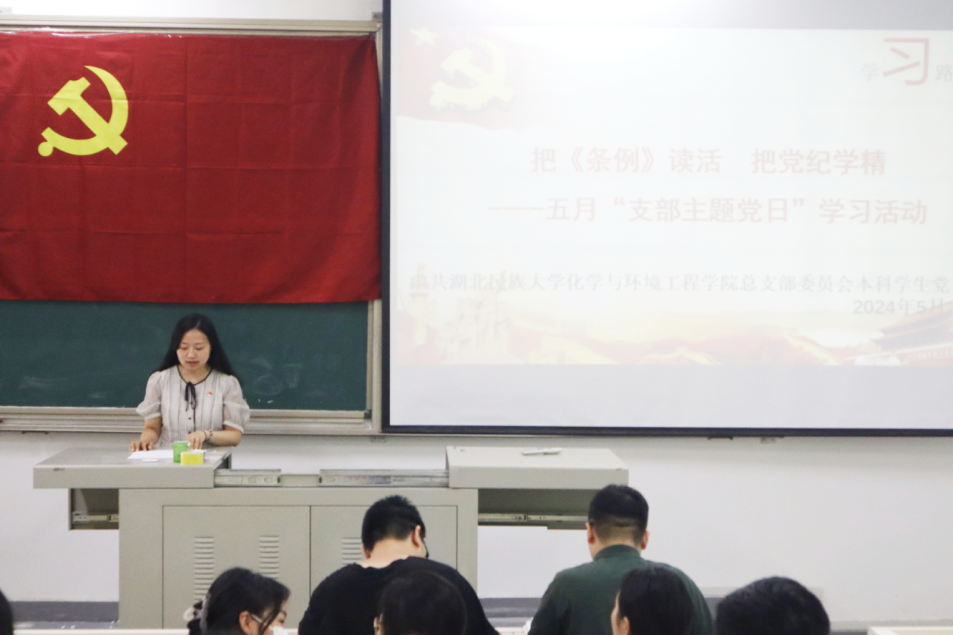 本网讯(通讯员 王奕 李松泽/文 张艺警/图)为深化党员的党纪学习实效,筑牢党员的政治纪律和政治规矩防线,5月23日,我院学生党支部在2107教室开展以“把《条例》读活,把党纪学精”为专题的党纪学习教育主题党日活动,全体党员参加学习。
