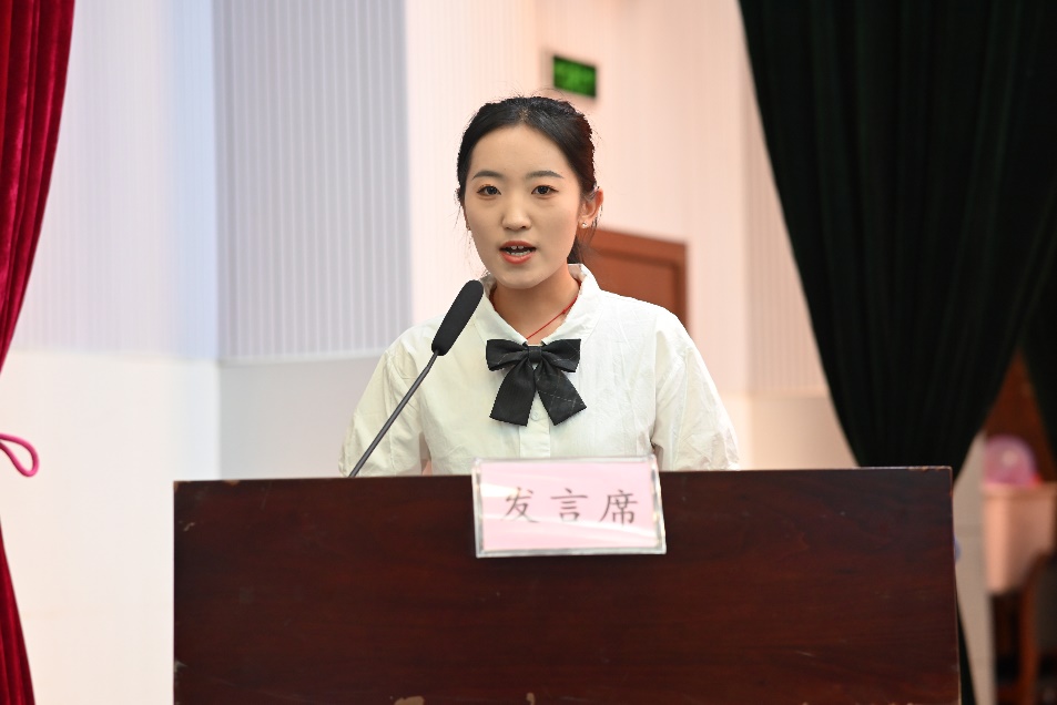 2024级化学工程与技术专业研究生韩庆楠作为新生代表发言。她回顾了自己本科经历中的的荣誉与挑战,表达了对家乡的自豪和对未来的憧憬,并对本科生和研究生新生提出了新的希望。她呼吁同学们将理论知识与实践结合,积极参与实践活动并服务社会。
