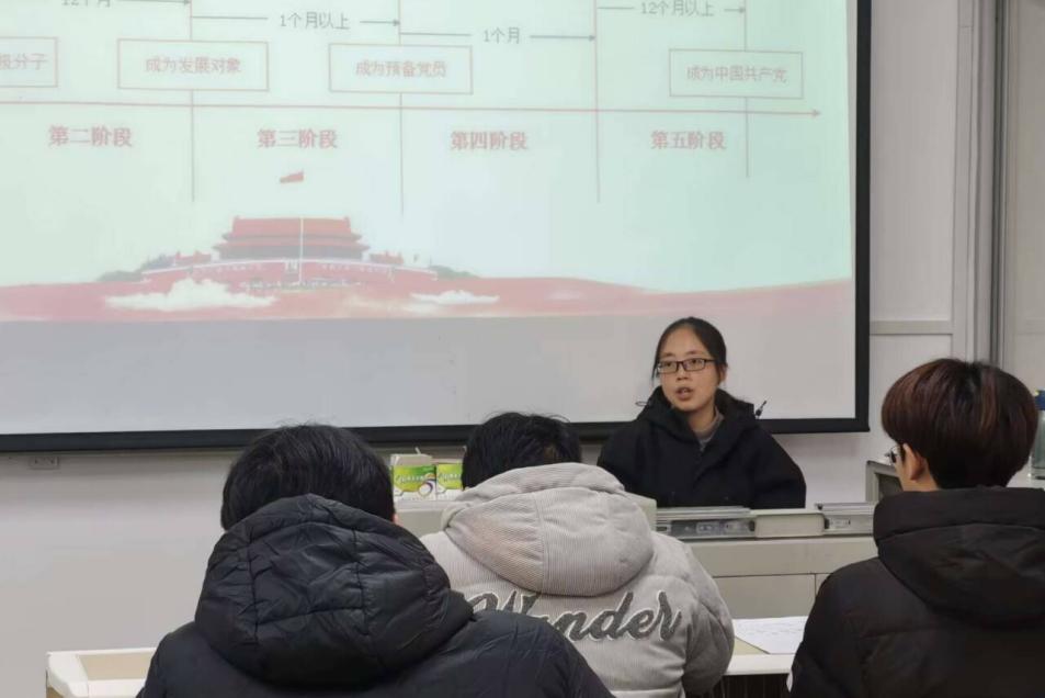 在第五次授课中,我院本科学生党支部组织委员覃昕详细阐述了入党流程和入党条件,以及如何推动党组织的发展。她强调,在同学们清晰了解入党流程和条件之后,应明确自己在思想和行为上需要努力的方向,以便更好地实践党员标准,积极向党组织靠拢。
