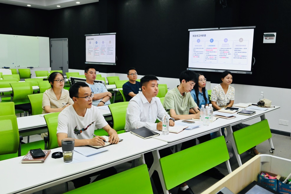 本网讯(通讯员 图/文 刘永康)为加强新生班主任队伍建设,顺利推进新生班主任工作,7月6日,我院在2205智慧教室开展专题培训,学院党总支副书记张妮艳担任主讲人,2025级新生班主任与学生科辅导员参加。