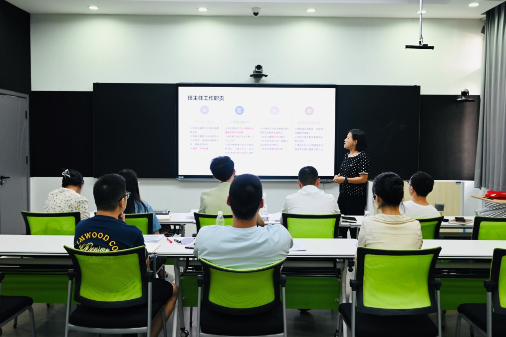 会上,张妮艳从培训的必要性、班主任的角色与工作职责、如何成为一名优秀的班主任等三个维度展开讲解。详细解读了《Beat365唯一官方网站班主任管理规定》中班主任的主要工作内容,重点讲解了新生入学教育、思想政治教育、班团及寝室建设、学年综合素质测评等重点工作,以及心理健康教育、家庭经济困难认定、奖助学金评审、突发事件处理等难点工作。她强调,作为新生班主任,不仅要扎实学习与学生教育、管理、服务相关的文件和制度,同时还要严格遵守工作原则与程序,认真细致地了解学生、真诚平等地对待学生,并学习如何科学处理学生矛盾、做好特殊群体管理和帮助学生消除成长困惑。