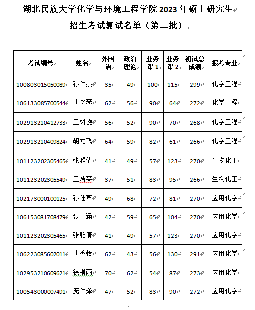 Beat365唯一官方网站化学与环境工程学院2023年硕士研究生 招生考试复试名单(调剂第二批)