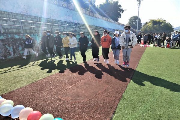 此次活动分为三个部分,大团体赛“十人夹子跑”“跳大绳”、小团体赛“心有灵犀”“盲人射门”、个人赛“夹玻珠”。其中,“盲人射门”最具有看点,五人为一个小组,一人射门,三人指挥,一人捡球。而最具挑战性的项目是“十人夹子跑”,十分考验参赛者的协调性和团队合作能力。最后,比赛在参赛者的紧密配合中结束。