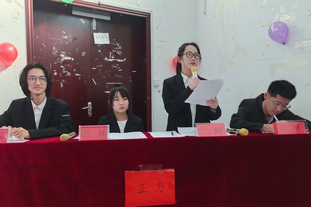 正方为化学专业代表队,反方为化学工程与工艺专业代表队,双方围绕“大学生迷茫情绪来自于自身还是社会”展开辩论。最终化学专业代表队以89.32分获得此次辩论赛冠军,正方二辩穆凡、反方二辩阳桂慧获得本次决赛优秀辩手。