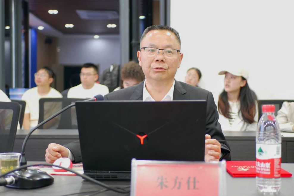 讲座前,学院进行了朱方仕老师兼职教授聘任仪式,我院党总支书记张刚为朱方仕颁发聘书并合影留念。