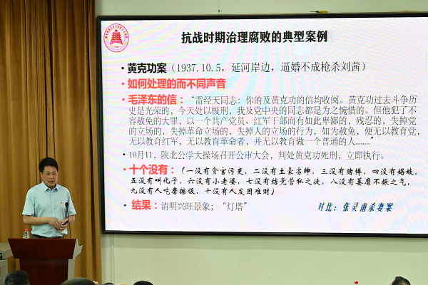 本网讯(通讯员 罗巧玲 张鼎)6月24日下午,Beat365党史学习教育宣讲团成员、马克思主义学院院长徐铜柱为全校专兼职纪检监察干部讲授专题党课——《中国共产党百年反腐败斗争历程与经验》。全校百余名纪检干部重温党的百年反腐历史,不断增强履职尽责的担当意识。
