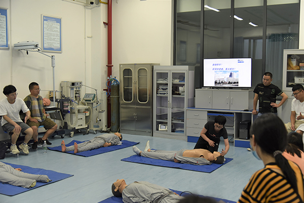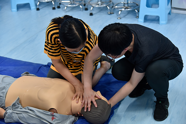 随后,教师每3至4人一组进行自我实操练习,评估环境、判断意识、胸外按压、开放气道、人工呼吸……按照规范的操作流程,所有教师井然有序地操作演练。“这次培训很有意义,我们了解了心肺复苏的相关知识,也学到了科学实用的急救方法,自身安全意识和急救能力都得到了提高。”新入职教师在培训后纷纷表示。(责任编辑 廖希为)